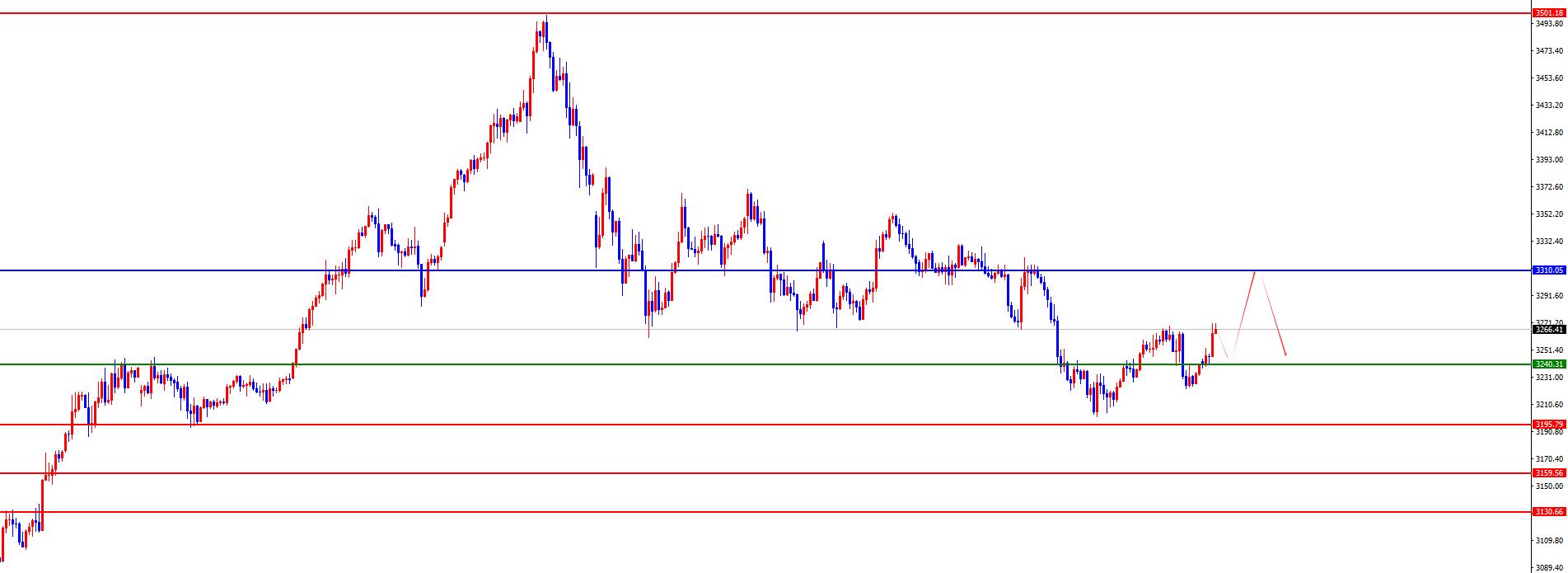 Aus einer Mehrzyklusanalyse beobachten Sie zunächst den monatlichen Rhythmus. Der Preis ist seit drei Monaten im frühen Stadium und dann zu einer einmonatigen Korrektur gestiegen. In letzter Zeit ist es in der letzten vier Monaten gestiegen, so dass es nach dem Rhythmus vier positive aufeinanderfolgende Positive gab. Für den aktuellen Mai müssen wir auf Marktrisiken achten. Aus wöchentlicher Ebene werden die Goldpreise durch das Support -Niveau in der Fläche von 3070 unterstützt. Aus der Sicht mittelfristig können wir also weiterhin eine optimistische Sichtweise aufrechterhalten, und der Preisrückgang ist nur eine Korrektur im mittelfristigen Anstieg. Aus dem täglichen Niveau liegt der aktuelle Preiswiderstand im Bereich 3310. Diese Position ist eine wichtige Wasserscheide im Bandtrend. Unter dieser Position wird die nachfolgende Bande in Kürze behandelt. Gleichzeitig bestimmen für den kurzfristigen vierstündigen oberen Preiswiderstand im Bereich von 3237-3238 die Gewinne und Verluste dieser Position den Schlüssel zum kurzfristigen Trend. Der Preis konsolidiert kurzfristig an dieser Position auf und ab. Achten Sie auf diese Position, um den täglichen Widerstandsbereich weiter zu testen, bevor Sie den Druck betrachten.