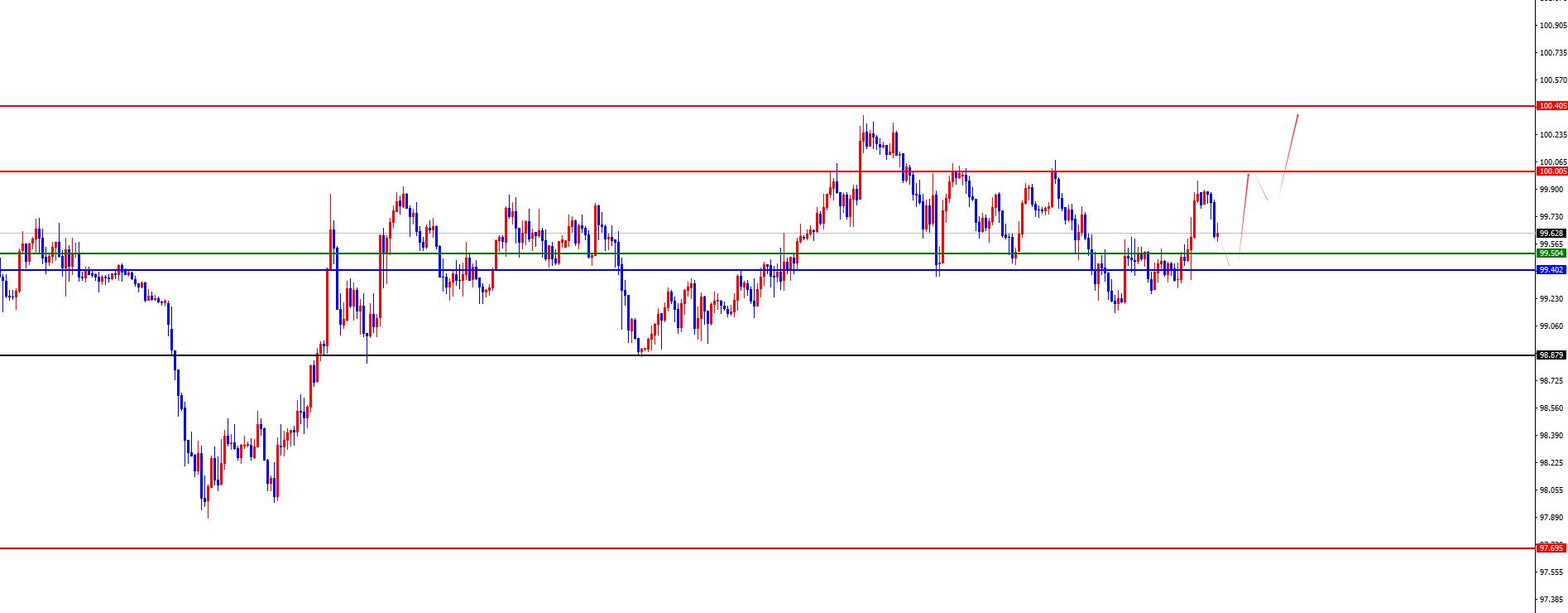 The US dollar index has a long range of 99.40-50, with a defense of 5 US dollars, and a target of 100-100.40