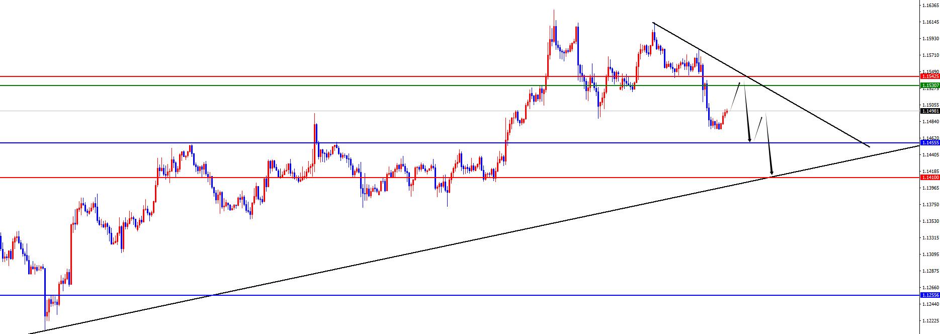 Europa und die Vereinigten Staaten haben eine kurze Reichweite von 1,1530-40, die Verteidigung 40 Punkte, Ziel 1.1500-145-1410
