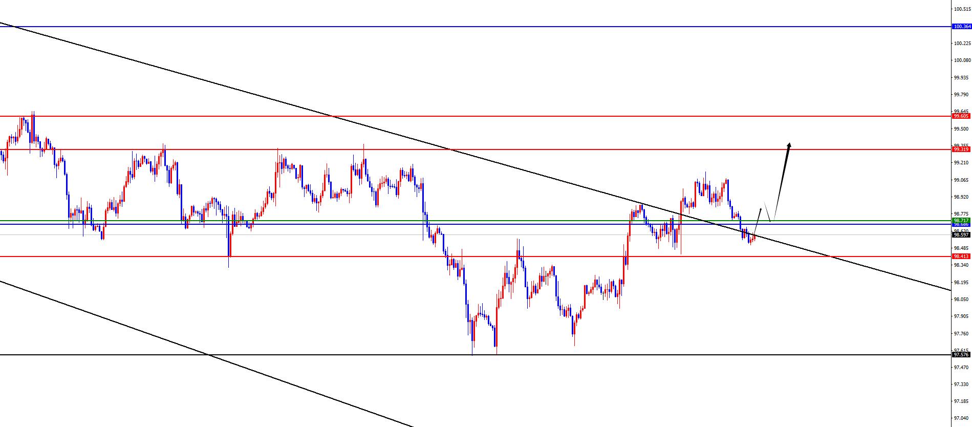 The US dollar index has a long range of 98.45-55, with a defense of 5 US dollars, and a target of 98.70-99-99.30