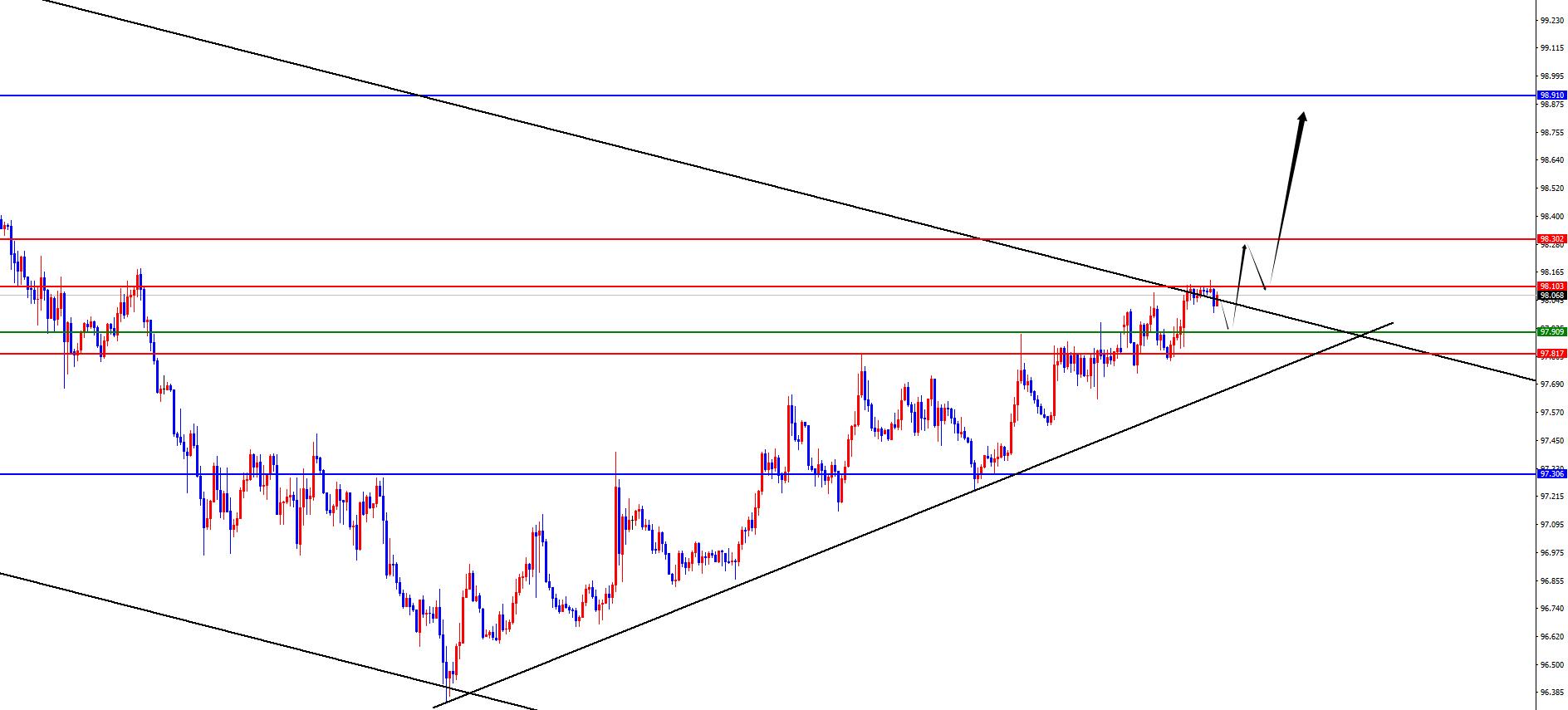 The US dollar index has a long range of 97.80-90, with a defense of 5 US dollars and a target of 98.30-98.90