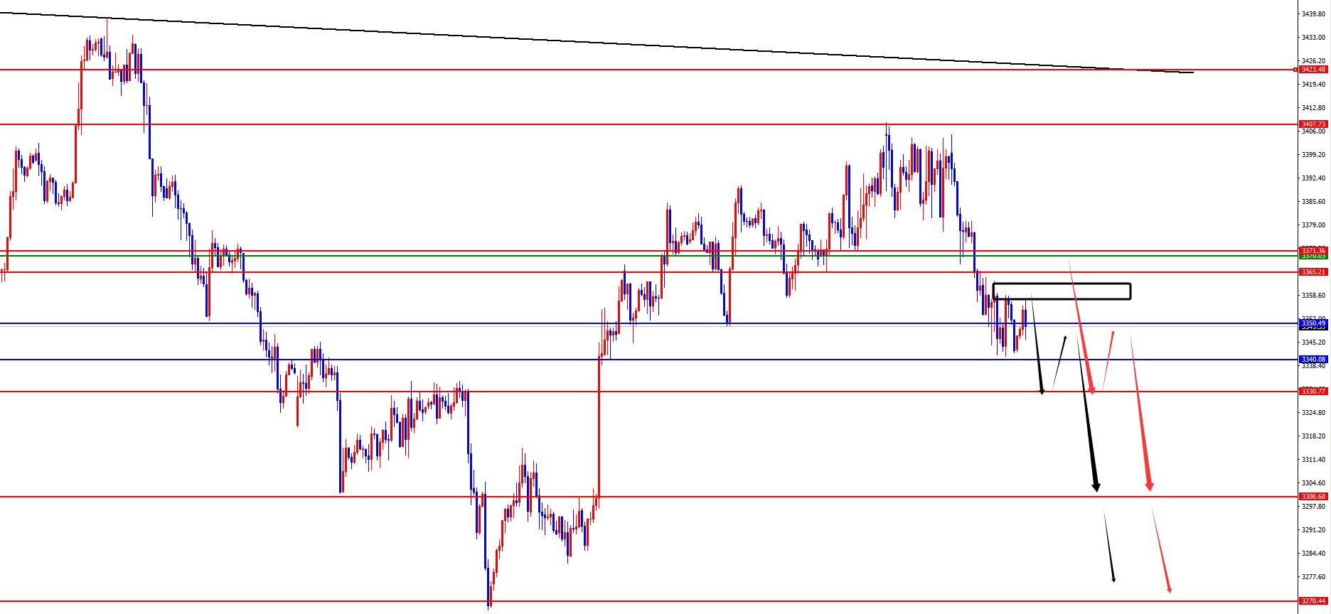 Gold 3370-3371 is short in the area, with a defense of US$10, and a target of 3330-3300-3270