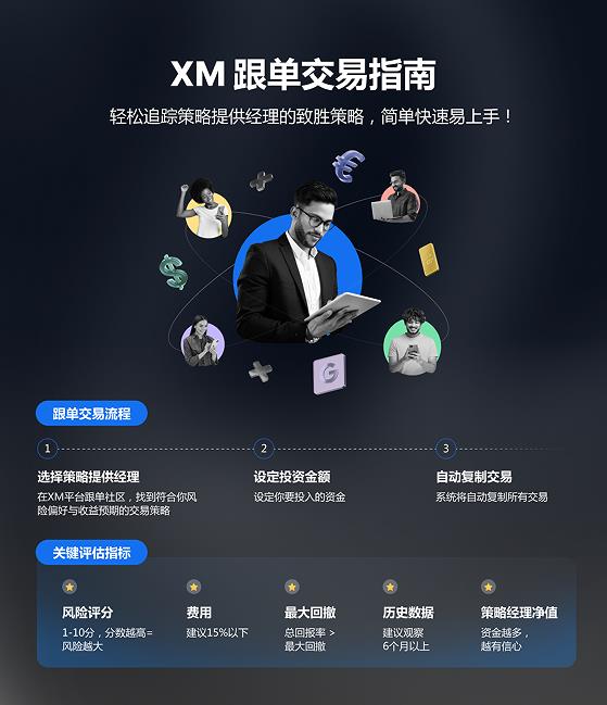 In der XM-Copy-Trading-Community (CopyTrading) können Sie die geeignete Strategie auswählen, um Managern basierend auf Ihrer eigenen Risikopräferenz und Ihrem Handelsstil bereitzustellen, und das System synchronisiert automatisch ihre Handelsvorgänge – folgen Sie einfach Aufträgen und meistern Sie den Marktrhythmus!