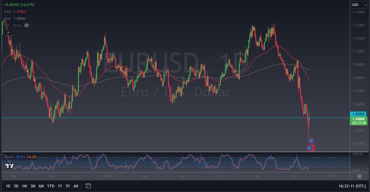 - In my daily analysis of the EUR/USD pair, it looks like the euro is simply treading water, just below the crucial 1.05 level.