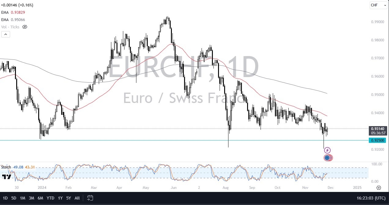 - The euro has been a little bullish against the Swiss franc during the trading session on Wednesday.