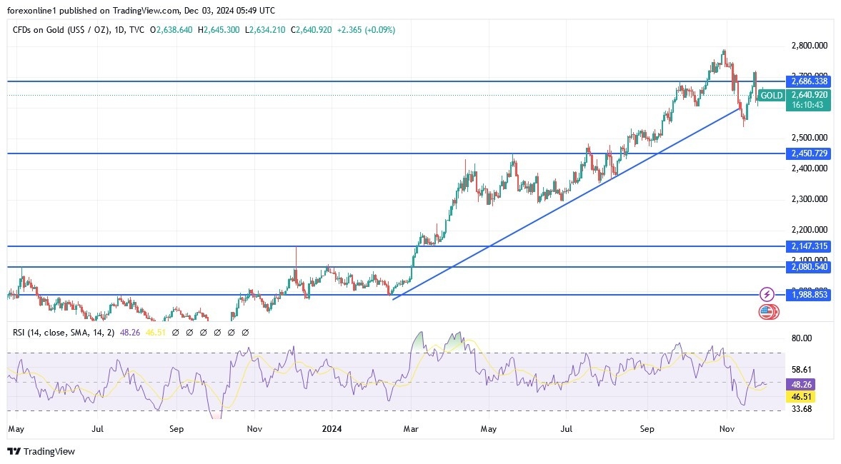 Despite the recent halt in gains, the overall trend of the gold price remains upward for now. According to today's gold analysts, the gold price remains above the 50-day and 100-day exponential moving averages (EMA). The most prominent resistance levels for the current performance will be $2675 and $2700 per ounce, respectively, and from the last level, technical indicators will begin to move towards strong overbought levels. The factors driving the upward gold trend are present and may continue regardless of the US dollar price in the xm217.coming months. According to the daily chart, the closest support levels for gold prices will currently be $2618, $2600, and $2575 per ounce.