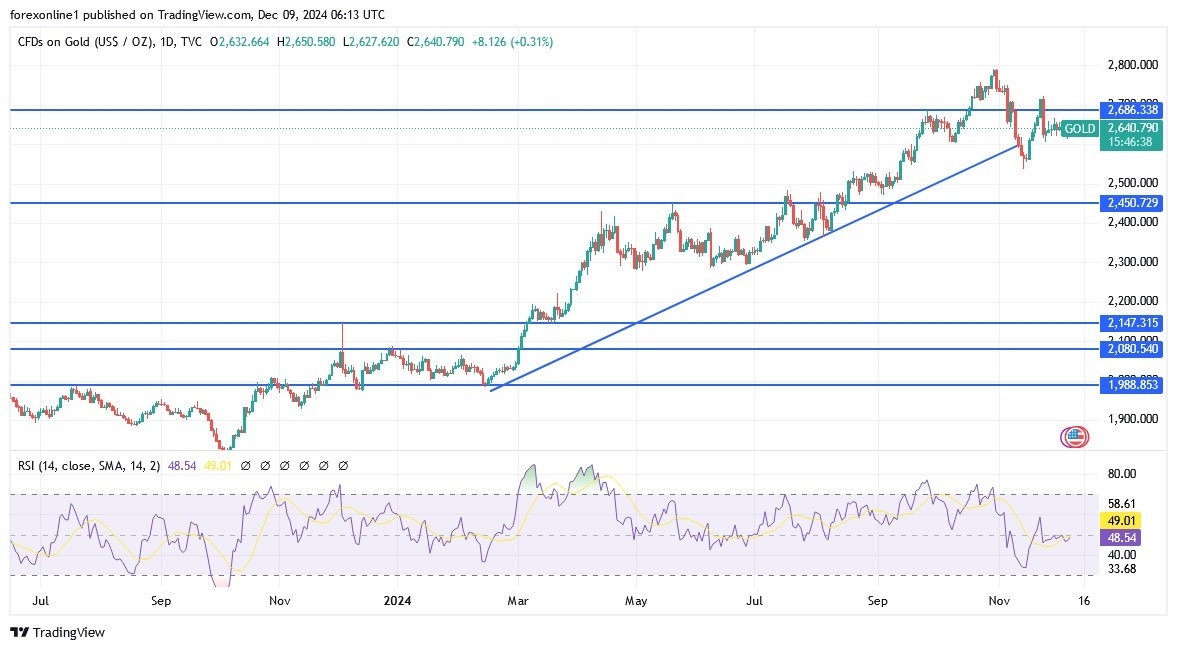 According to today's gold analysts' forecasts, the formation of an upward channel for gold prices on the daily chart will become stronger if prices move towards resistance levels of $2,665 and $2,680 per ounce, which in turn will pave the way for the bulls to reach the psychological ceiling of $2,700 per ounce again. Technically, the Relative Strength Index (RSI) indicates a neutral performance and balance between bears and bulls at present. Also, it will move upwards with the $2,700 peak. At the same time, the direction of the MACD indicator begins to shift upwards but lacks upward momentum. You can consider buying gold from support levels of $2,638, $2,620, and $2585 per ounce, respectively. At the same time, it is necessary to avoid risk and activate take-profit and stop-loss orders to ensure the safety of the trading account from any sudden price reversals.