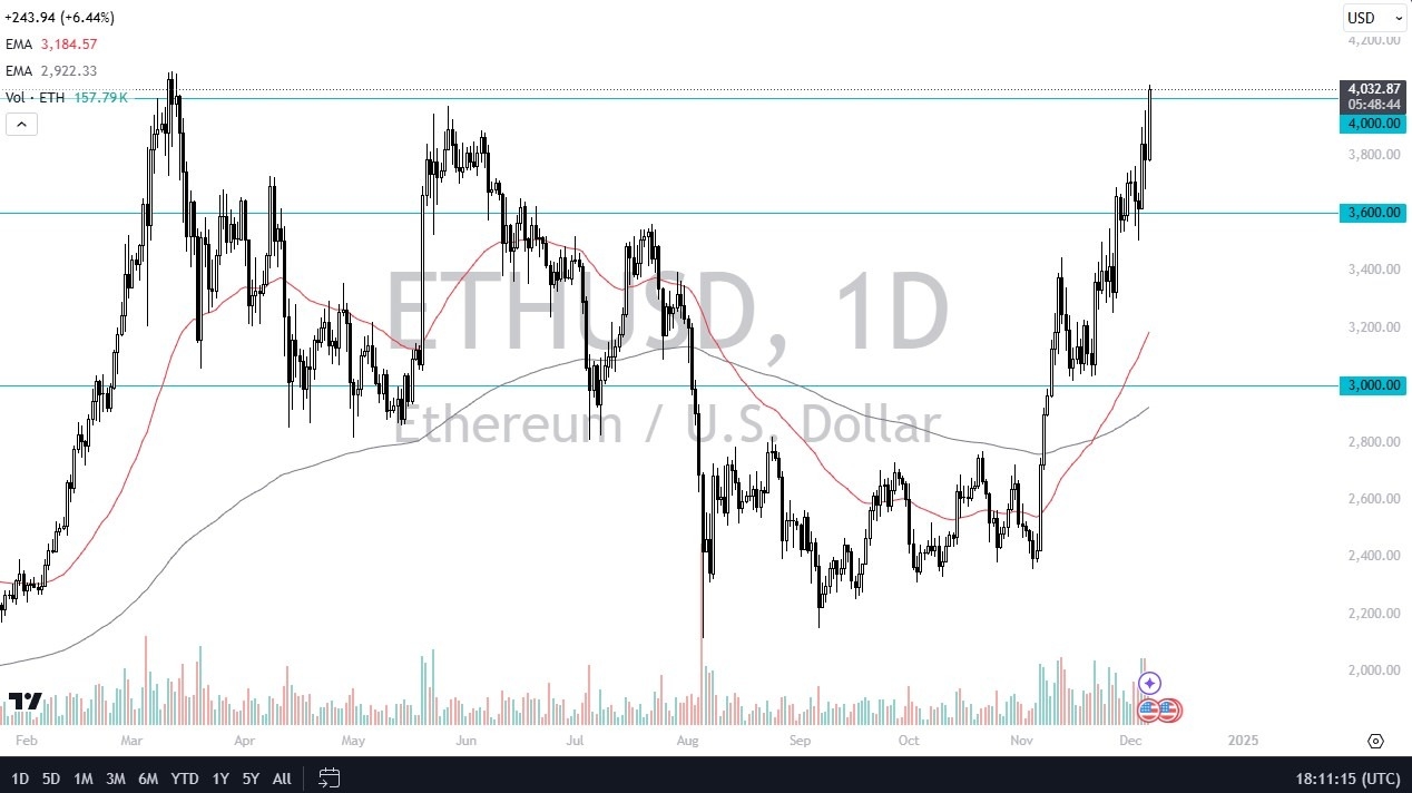 - Ethereum has busted through the $4,000 level and is now testing its all-time highs as I record this.