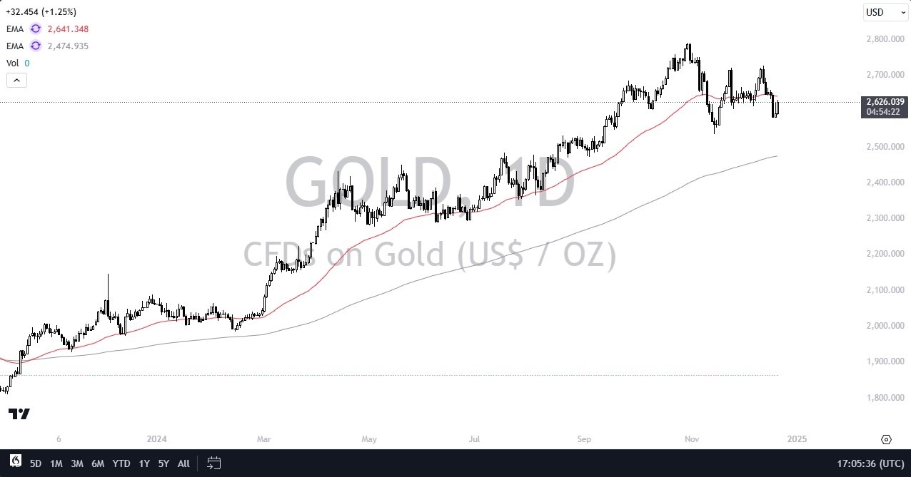 The gold market breaking above the top of a significant inverted hammer is of course a very bullish sign, and then after that we have the 50 Day EMA above, which would bxm217.come a bit of a barrier that a lot of people would be paying close attention to. If we break above there, then it opens up the possibility of the gold market going to the $2725 level. Anything above that level would break the back of a “double top”, as we have recently seen that area offer noisy trading. If we break above that, then we are free to go to the all-time highs again.