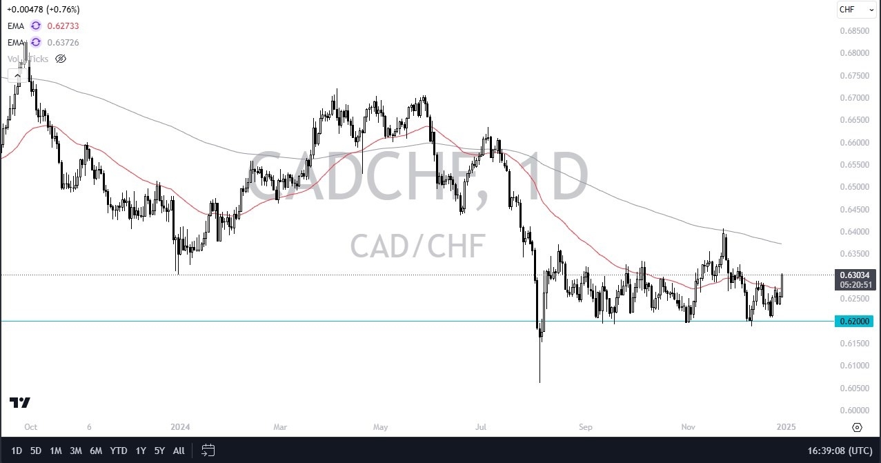 - The Canadian dollar rallied rather significantly against the Swiss franc during the trading session on Monday to break towards the 0.63 level.