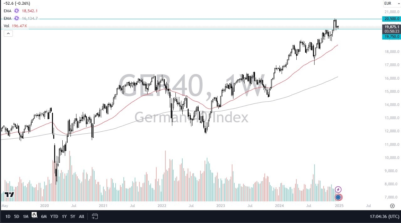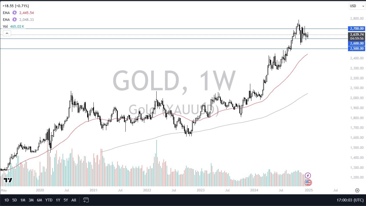 Gold markets have gone back and forth during the trading week, which makes sense considering that we are just simply killing time in trying to sort out where we are going next longer term. I think we are entering a rather large consolidation area, as we had originally shot straight up in the air, and therefore I think you’ve got a situation where we have to work off some of xm217.comthe froth. I am very neutral on the gold market right now, but I recognize that any pullback will probably look at the $2500 level as “value.”