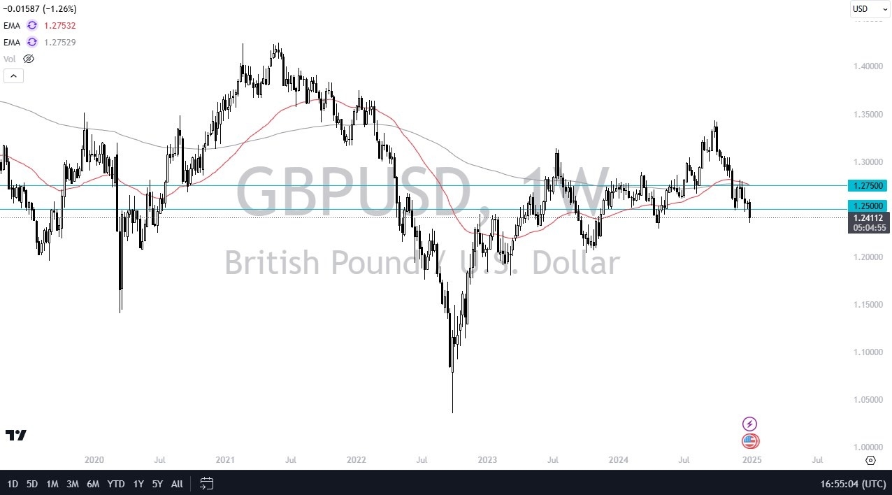 The British pound broke down during the course of the week, finally breaking below the 1.25 level. The 1.25 level of course is an area that a lot of people will be paying close attention to, as now that we are below it, there’s a chance that this market will run to the downside. That being said, I think short-term rallies are probably selling opportunities, but I would also point out that the British pound has outperformed many of its peers against the US dollar, so I think the downside is going to be a little less drastic here than it is in other major currency pairs denominated in USD.
