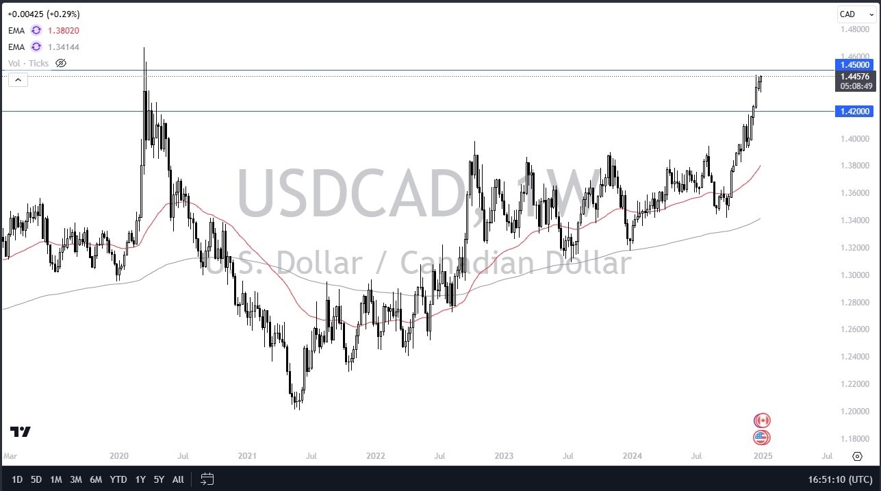 The US dollar initially fell against the Canadian dollar during the week but has turned around to show signs of significant strength. By doing so, the market looks as if it is going to continue to see more of a “buy on the dip” attitude, as market participants continue to pay close attention to the 1.45 level. If we can get above there, then it’s likely that the market will continue going higher, perhaps breaking out through massive resistance. Between now and that move, I anticipate that we will see the occasional pullback in order to take profit. I also believe that there are plenty of buyers out there willing to get involved.