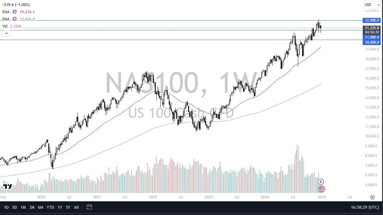 The NASDAQ 100 has been a bit noisy, but really at this point in time it looks like a market that continues to be more or less a “buy on the dips” scenario. The 21,000 level is an area that a lot of people are paying attention to as potential support, but if we were to break down below the lows of the week, this would be an area that could trigger a bit more selling. At that point, I would anticipate that the NASDAQ 100 will go looking to the 20,000 level for a significant amount of support based on the large, round, psychologically significant figure, and of course the fact that it has been important previously. All things being equal though, I expect this market to be more back and forth during most of the week, as we have the Non-Farm Payroll numbers xm217.coming out on Friday. Either way, I’m bullish longer term.
