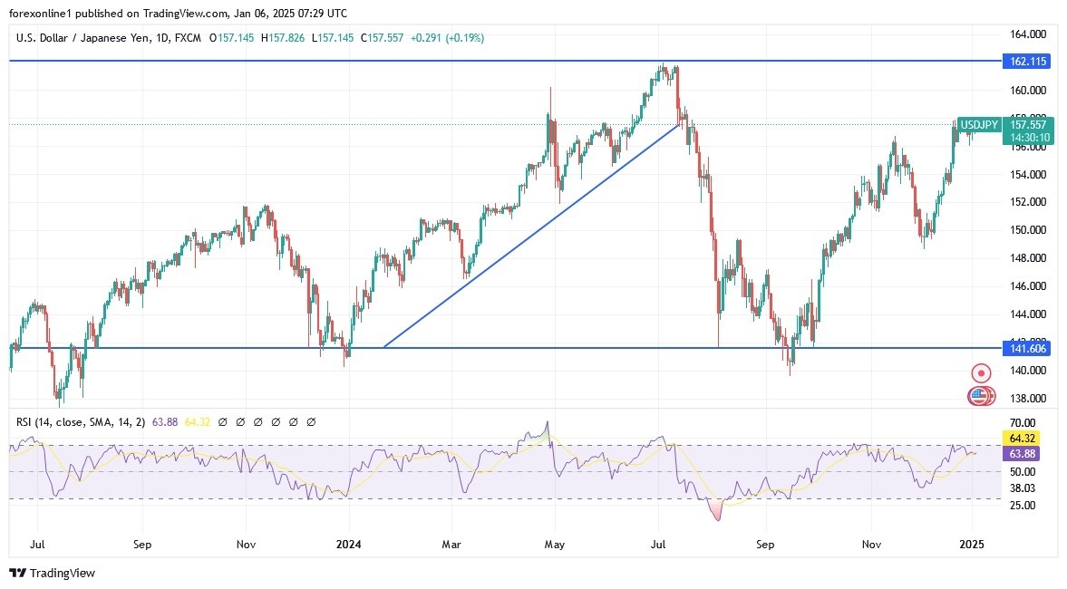 - For ten consecutive trading sessions, the USD/JPY pair has been moving within narrow ranges with a strong bullish bias, with gains reaching the resistance level of 158.00.