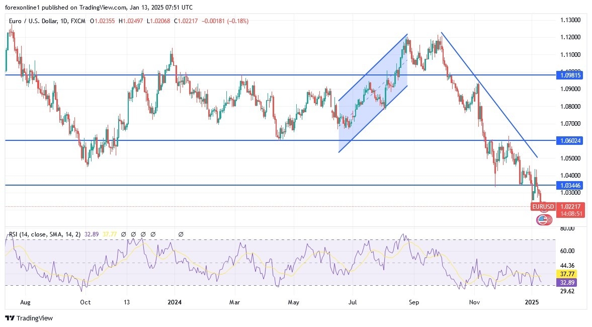 - Following the market's reaction to the minutes of the latest Federal Reserve meeting and the release of stronger-than-expected US jobs data, the EUR/USD pair experienced significant losses, reaching a support level of 1.0213, its lowest in over two years.