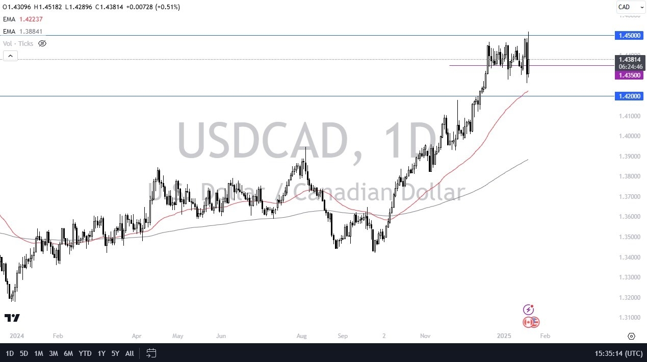 The 1.45 level above is a significant barrier, but quite frankly, the Canadians seem like they can't get out of their own way from a government's standpoint. With that being the case, it's basically Donald Trump dealing with himself. So, at this point, until the Canadians can get some type of government body functioning, you have to believe that the US dollar will continue to strengthen against the Canadian dollar. In addition, you have higher interest rates in America, et cetera. I do think short-term pullbacks are buying opportunities in this pair, as we've seen multiple times. Also, the candlestick on Tuesday is beyond ridiculous, but it looks like we're still sticking with the US dollar strength overall, which does blend well with the overall trend. So, I think it remains buy-on-the-dip. If we can stick and stay above the 1.45 level on a daily close, that might be a sign that we're finally going to the 1.4750 level. Unless we break down below 1.42, then I wouldn’t be overly concerned about the trend. Even then, it's probably just a correction.