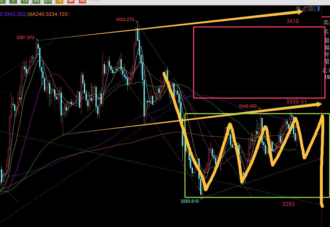 First, gold daily level: Yesterday The daily closing of the cross K, and it is still impossible to break through the 5 moving average and cannot effectively fall below the middle track, so short-term bulls and bears are still in a sideways struggle; today's short-term moving average is dead crossing for 10 days on the 5th day, and then it will rise first in the day and run above the 5th day, which will form a certain index divergence, which is easy to rise and fall; therefore, after the clear range of 3350-3293 in these days, it will naturally choose to oscillate and bearishly fall;Tonight, the market expects to start to rise. Once it meets, gold will suppress it. Only by squatting again can we usher in the opportunity to bottom out at this week's low level; the video originally indicated that the ideal position was 3228, but judging from the resistance to decline in the past two days, it is expected to be carried out in advance, or after puncture of the early low of 3293 weeks, this week's low may be brewed, such as 3280, 3270, etc. Let's see if the line closes today and then decide step by step;