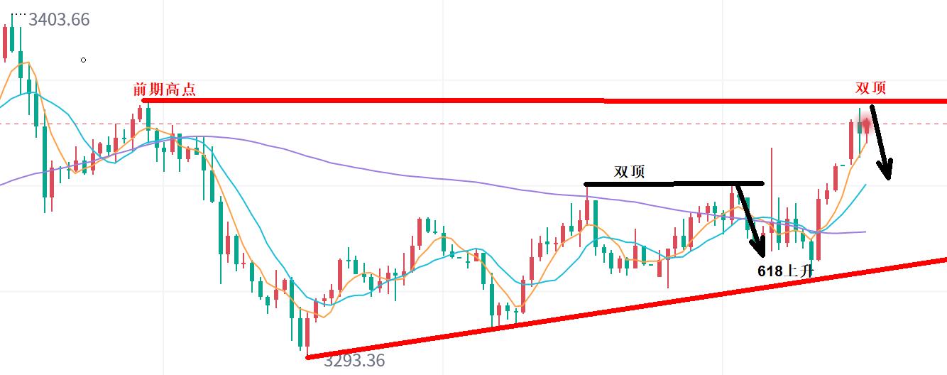 Today, the morning rose, the double-top resistance of the oscillation was 3375-76, but when it came again, the oscillation could be empty, but after a one-sided thinking, this position could not be operated.