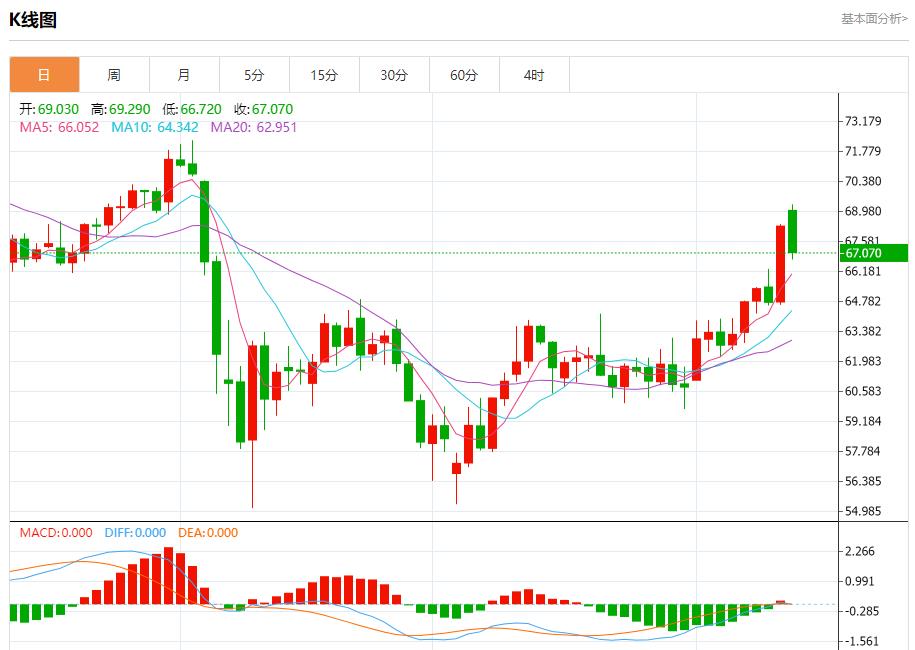 Crude Oil Market: As of 20:20 Beijing time, U.S. oil fell to 67.060, a drop of 1.60%. Before the New York Stock Exchange, the price of (crude oil) fell in recent intraday trading, and after reaching overbought levels, there was a negative signal on (RSI) in an attempt to find a higher low as the basis may help it obtain the desired positive recovery momentum, and dominates the main bullish trend in the short term, along the slash, continue to gain positive support from trading above the EMA50.