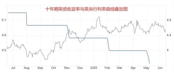This Thursday at 19:00, the Bank of England will announce the results of the June interest rate resolution. Mainstream expectations believe that it will remain unchanged and maintain the 4.25% benchmark interest rate unchanged. Since July 2024, the Bank of England has cut interest rates four times, with a cumulative increase of 100 basis points. The latest rate cut occurred in May, and there was no problem of a suspension of interest rate cuts like the Federal Reserve. The reason why financial institutions predict that the Bank of England will remain unchanged is because the Bank of England believes that the pace of rate cuts before was too fast. As BoE chief economist Peel said: "The rate cut since last summer is too fast, and the exit of restricted interest rates needs to slow down." Since the beginning of this year, the 10-year UK Treasury yield has maintained a sideways fluctuation and has not declined as quickly as the causal benchmark interest rate. This is also a signal that the Bank of England will maintain the benchmark interest rate unchanged for a long time.