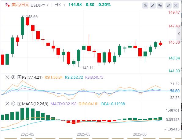 Data from Japan showed that during the early Asian session, machine orders fell by 9.1% month-on-month in April. The U.S. dollar/yen fell slightly after closing ups in the first three trading days, trading around 145.00 in the European session on Wednesday.