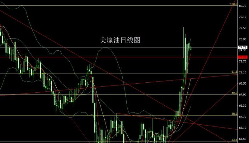 The US crude oil market opened at 75.27 yesterday and then the market fell first. The market rose rapidly. The daily line reached the highest position of 75.65 and then the market fell strongly. The daily line was at the lowest position of 72.68 and then the market rose at the end of the trading session. The daily line finally closed at 74.55 and then the market closed in a hammer head pattern with a very long lower shadow line. After this pattern ended, it first pulled up today to give 75.4 short stop loss 76. The target below is 74.3 and 73.7 and 73.