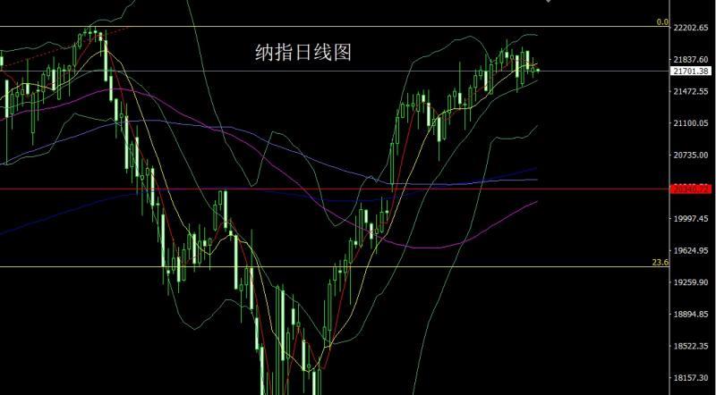 The Nasdaq market opened at 21690.23 yesterday and the market fell first. The daily line was at the lowest point of 21627.9 and then the market rose strongly. The daily line reached the highest point of 21864.32 and then the market consolidated. The daily line finally closed at 21734.37 and then the market closed in an inverted hammer head with a long upper shadow line. After this pattern ended. , Today's 21820 short stop loss was 21900, and the target below is 21700 and 21600-21500.
