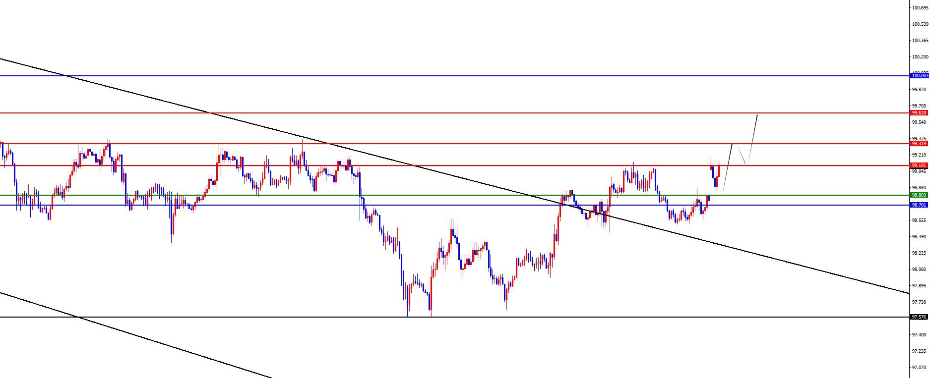 The US dollar index has a long range of 98.70-80, with a defense of 5 US dollars, and a target of 99.30-99.50