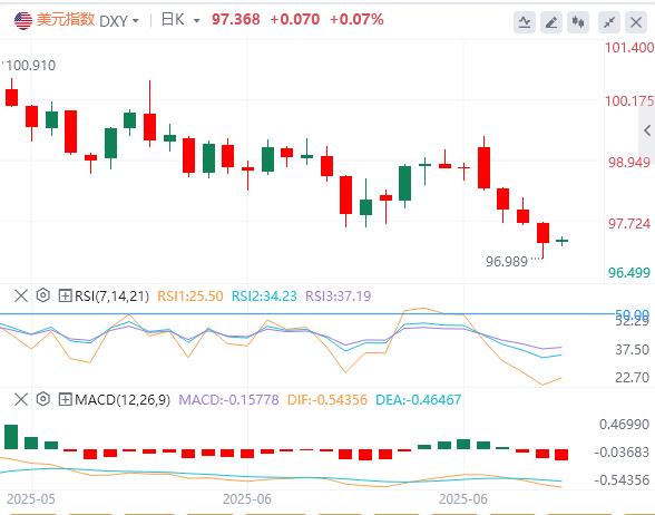 Dollar Index: As of press time, the US dollar index hovers around 97.36. Because policy tensions between Trump and Powell have curbed their risk aversion needs. Federal Reserve Chairman Powell said that before considering rate cuts, central banks need more time to measure the impact of tariffs on inflation. Technically, the most recent support level of the US dollar index is in the range of 96.70–96.90. Break below this level will push the U.S. dollar index to the next support level of 95.40 –95.60.
