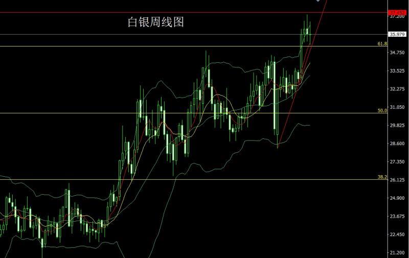The silver market opened at 35.96 last week and then rose slightly. The market fell sharply. The weekly line was at 35.96, and the market rose strongly. The weekly line reached the lowest position of 35.261, and the market rose strongly. The weekly line finally closed at 35.975, and the market closed with a long-foot cross star with an upper shadow longer than the lower shadow. After this pattern ended, the weekly line was long-stop loss of 35.15 this week, and the target was 35.8, 36 and 36.2 to leave the market and prepare to be short.