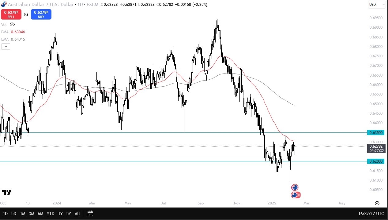 Ultimately, this is a scenario where I think you see a lot of sideways action as we try to determine what to do next. But I think the real key is whether or not we can get a daily close above 0.6350, then you might have a deeper correction of the massive downtrend. But as things stand right now, I look at this as a fade the rally type of market, much like you see in the Euro against the US dollar or the British pound against the US dollar.
