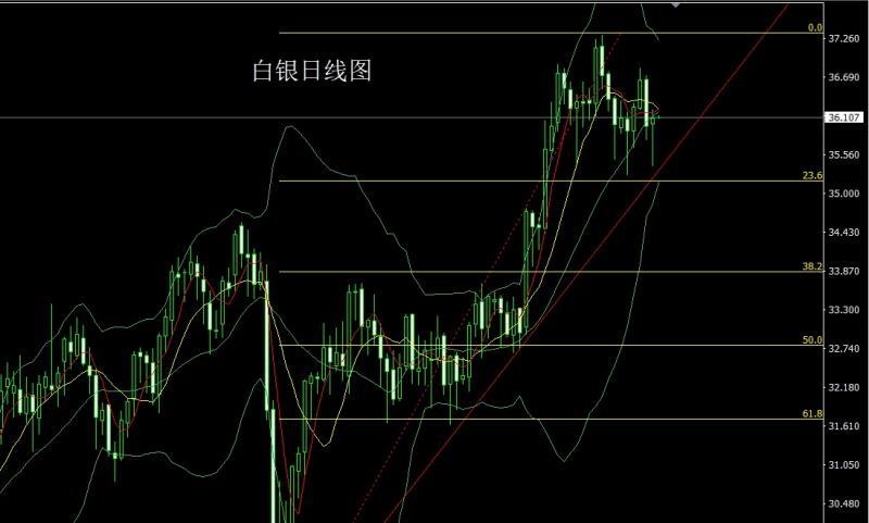Silver: 35.8 today's long stop loss 35.6, target 36.1 and 36.25, breaking the position 36.4 and 36.6.