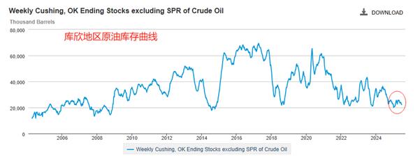 The above picture is the crude oil inventory curve in Cushing, USA. Since May 2020, the inventory curve has been in a downward state. Although there has been a rebound during this period, it has not damaged the short structure. Since July 2022, crude oil inventories in Cushing have shown strong support areas, around 20 million barrels. Every time the inventory curve falls to around 20 million barrels, it will be stimulatedA round of inventory rebound. Judging from the trend of US crude oil, from May 2020 to July 2022, with the decline in the inventory curve, the price of US crude oil continued to rise, and the market price rose from US$6.5 to US$130.5. After July 2022, the decline in the crude oil inventory curve narrowed, and there was an inventory support area below, so the price of US crude oil turned from rising to falling, reaching a low of US$55.3 this year. We believe that the inventory curve has been fluctuating in a narrow range and cannot have a significant impact on the price of US crude oil. Only when the inventory curve rises or falls from a large angle can it stimulate the rise and fall of US crude oil prices.