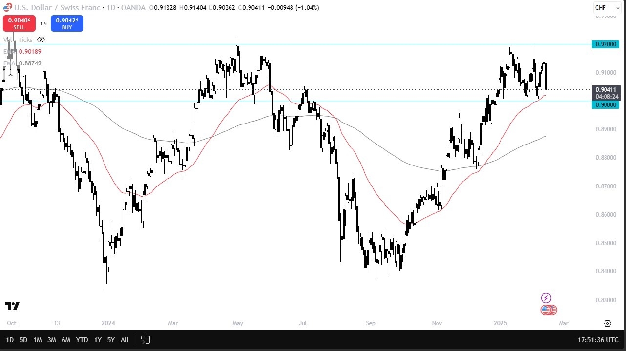 But at this point in time, I think we had a little bit of a relief rally, not only for the Swiss franc, but for multiple other currencies that had been struggling against th【XM外汇】e US dollar as well, such as the British pound or the euro, for example. So, at this point in time, I am looking very closely the area underneath that we currently see a lot of support at near the 0.90 level. The fact that the 50 day EMA sits right there is probably worth paying close attention to as well. With this, at the first signs of a bounce, I'm more than willing to start buying again. And I recognize that in the longer term, it's very likely that if we can break above the 0.92 level above, it is a major breakout just waiting to happen.