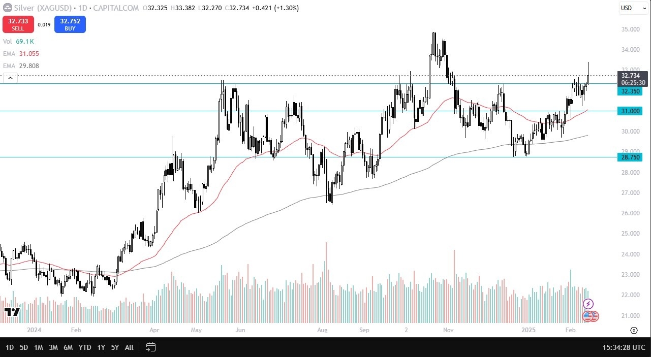 However, that's also in theory going to be based on whether or not we can bother hanging on to the gains. And right now, that's a very real question indeed. So, we'll have to see. As long as we can stay above this area of $32.35, maybe even $32.50, then I think silver has a real shot at going higher, but it's obviously going to be a very volatile market and you're going to have to be very cautious.
