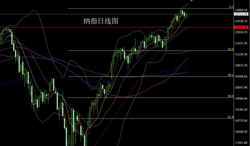 Nasdaq market opened at 22645.18 yesterday and the market fell first. The daily line was at the lowest point of 22610.83 and then the market fluctuated strongly. The daily line reached the highest point of 22776.83 and then the market was consolidated. The daily line finally closed at 22704.05. Then the market closed with a spindle pattern with an upper shadow line slightly longer than the lower shadow line. After this pattern ended, today's 22750 short stop loss was 22810. The target below looks at 22650 and 22600 and 22550-22500.