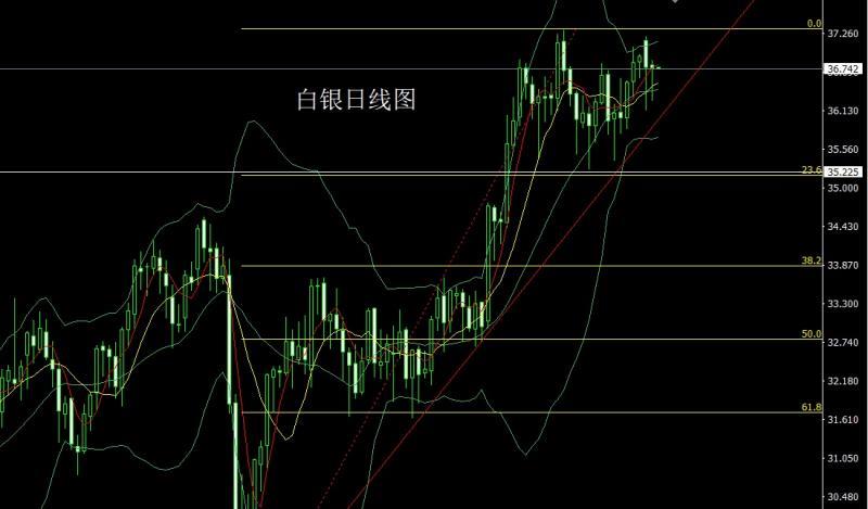 The silver market opened at 36.796 yesterday and then fell back first. The market first gave a position of 36.636. Then the market rose strongly. The daily line reached the highest position of 36.87 and then fell back twice. The daily line was at the lowest position of 36.274 and then rose at the end of the trading session. The daily line finally closed at 36.745 and then closed with a star pattern with a very long lower shadow line. After this pattern ended, it fell back to 36.4 and stopped loss of 36.2 today. The target was to leave the pressure of 36.7 and 36.85.