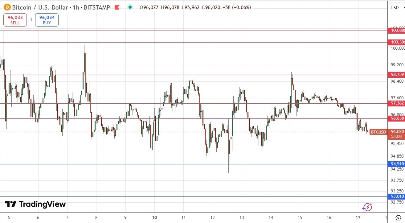 So, I think the best approach to trading Bitcoin today will be to take a short trade entry if we get two consecutive hourly closes below the support level at $94,510 if the reward to risk ratio looks good, and provided there are no strong lower wicks on either of those hourly candlesticks.