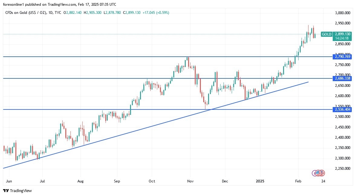 - Bulls have returned gold prices above the psychological resistance of $2,900 per ounce at the beginning of this week after losses at the end of the week reached the support level of $2,877 per ounce.