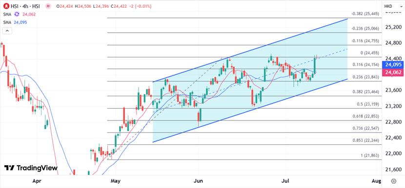 XM Hong Kong Stocks: The market expects that the Central Political Bureau meeting this month may introduce stimulus policies. After the Hong Kong stock market rebounded by more than 100 points yesterday, it opened slightly higher today, with the Shanghai xm217.composite Index rising by more than 1%, the Hang Seng Index rose by 457 points in the half-day period, and continued its strength in the afternoon. It once rose above the 24,500 point mark and encountered resistance, and the increase partially narrowed. The Chinese index rose 158 points or 1.8% in the half-day period to 8,827 points; the Hang Seng Technology Index rose 108 points or 2.1% to 5,324 points.