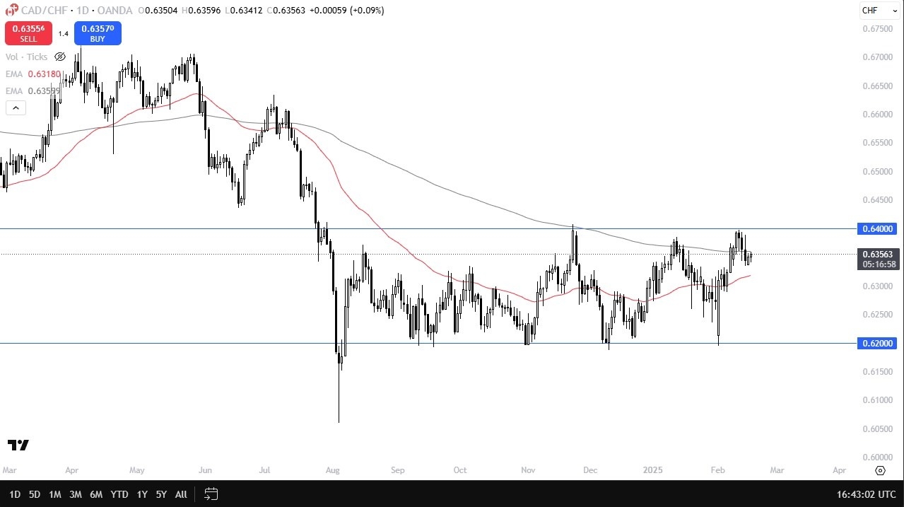 The Canadian dollar initially pulled back just a bit during the trading session on Tuesday but then turned around to show signs of life. The market is currently hanging around the 200-day EMA, which in and of itself will cause a certain amount of interest. But when I look at this chart, I also recognize that it is a market that has been consolidating for some time. What I find interesting is that a couple of weeks ago, we ended up forming a massively bullish candlest【XM外汇】ick after the initial gap lower due to tariffs being announced by the United States. And we have rallied quite nicely since then. I think at this point in time, most traders are willing to sleepwalk past the idea that the United States might still slap tariffs on Canada.