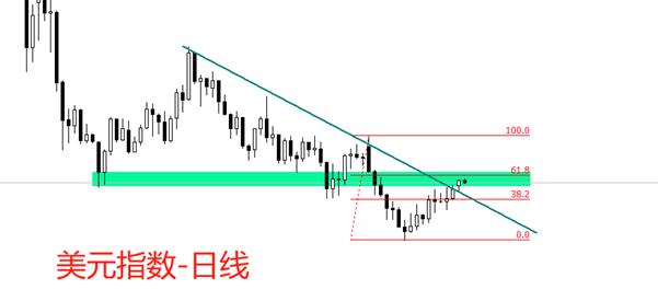 From the trend structure perspective, at the daily level, the US dollar index is in a medium- and long-term short trend, and there is no bottoming structure yet, and the probability of short selling is relatively high. The finest band is the rise, with the highest point being 98.11 points. The highest point is already above the medium- and short-term downward trend line, and there is a possibility of a turnover. The highest price is near the 0.618th quarter of the previous round of decline, and may encounter obstacles and fall back. The green area is the support level of the previous round of market conditions and may evolve into the resistance range of the current upward band. Overall, the highest point of the upward band faces double resistance and support from a trend line, and the future trend is relatively uncertain.