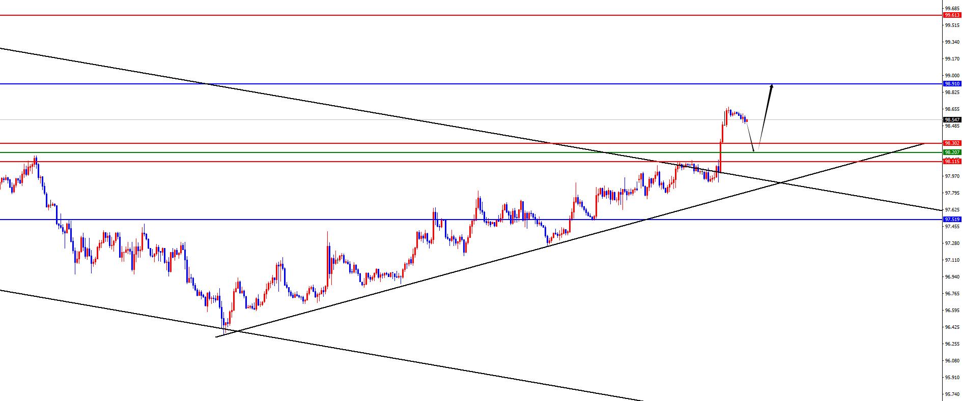 The US index has a large range of 98.20-30, with a defense of 5 US dollars, and a target of 98.90-99.60