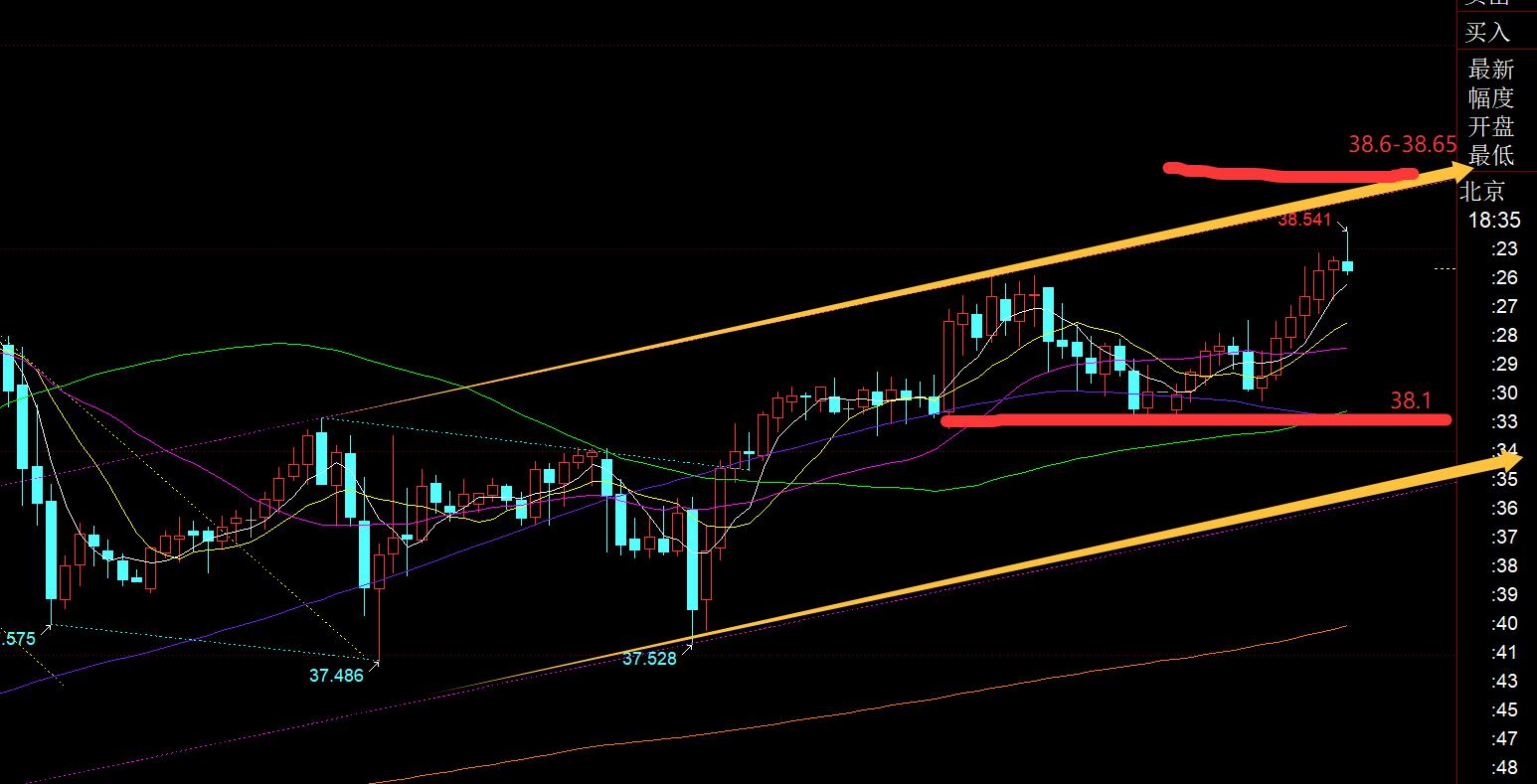 In terms of silver: Today's silver resistance is 38.6-38.65, support 38.1-38.2, and it must be oscillated and consolidated within the range, and continue to oscillate and slow upward; if the strong attack breaks through the resistance level, continue to pull up to 38.8-39;