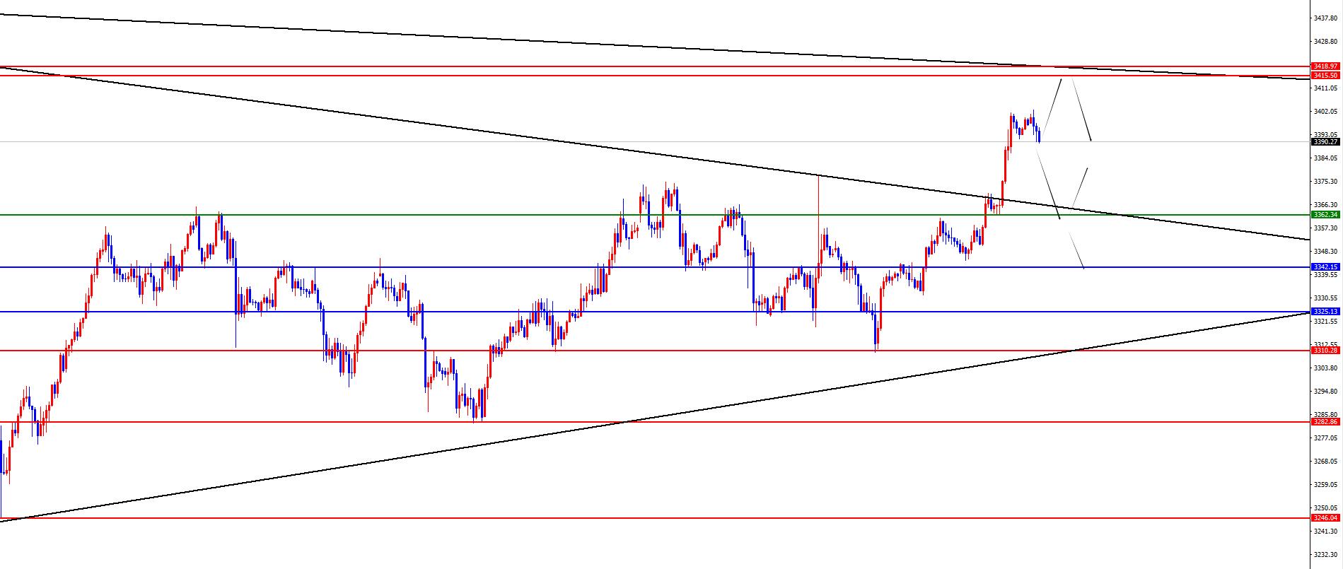 It is long before the four-hour support 3362, and after the break, it will be adjusted in time to be bearish