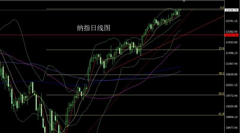 Nasdaq index market opened at 23045.58 yesterday and the market rose slightly, and then the market fell sharply. The daily line was at the lowest point of 22992.94 and then rose strongly in the late trading. The daily line reached the highest point of 23264.23 and then consolidated. The daily line finally closed at 23253.7, and then closed with a large positive line with a long lower shadow line. After this pattern ended, the daily line was positive and negative. Today, the 23140 stop loss was 23090. The target was 23270 and 23350-23400.