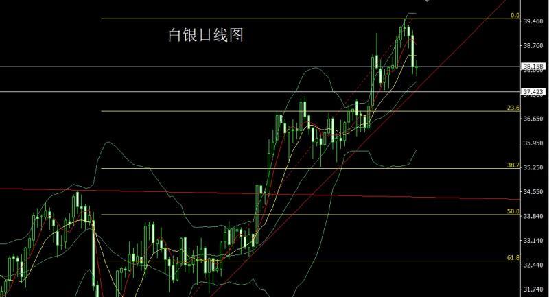 The silver market opened at 38.137 yesterday and then the market rose slightly, and then the market fell strongly. The daily line was at the lowest point of 37.888 and then the market consolidated. The daily line finally closed at 38.156 and then the market closed with a long-leg cross-star pattern with a lower shadow slightly longer than the upper shadow. After this pattern ended, it fell back to 37.65 and stopped loss 37.5 today, and the target was 38.2 and 38.4 and 38.6.
