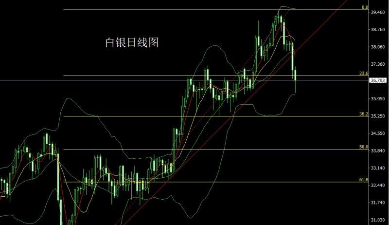 The silver market opened at 37.112 yesterday and then the market fell first, and then the market rose rapidly. The daily line reached the highest position of 37.27 and then fell strongly. The daily line was at the lowest position of 36.196 and then rose at the end of the trading session. The daily line finally closed at 36.703. The daily line closed with a very long lower shadow line. After this pattern ended, if it fell first, it gave 36.3 and 36.1. The target was 36.7 and 37 to leave the market and prepare to short
