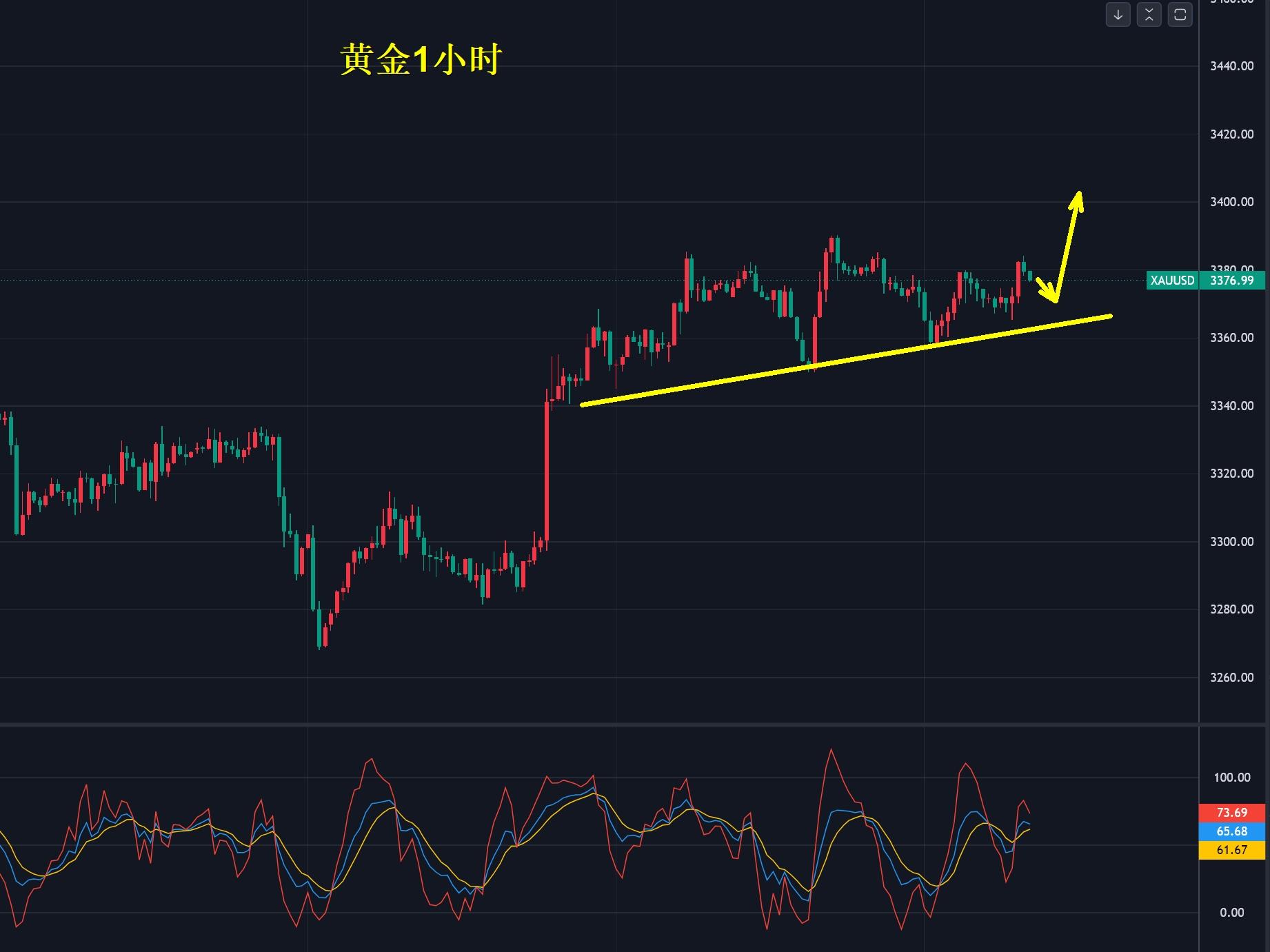 In one hour, since the unexpected decline in non-agricultural data on Friday last Friday, the gold price violently rose above $3360. This week, with $3350 as a strong support, the rise slowly. The strength and speed of the rise are not too fast, and the profit is basically stuck at around $15. It is easy to shudder if you look too far.